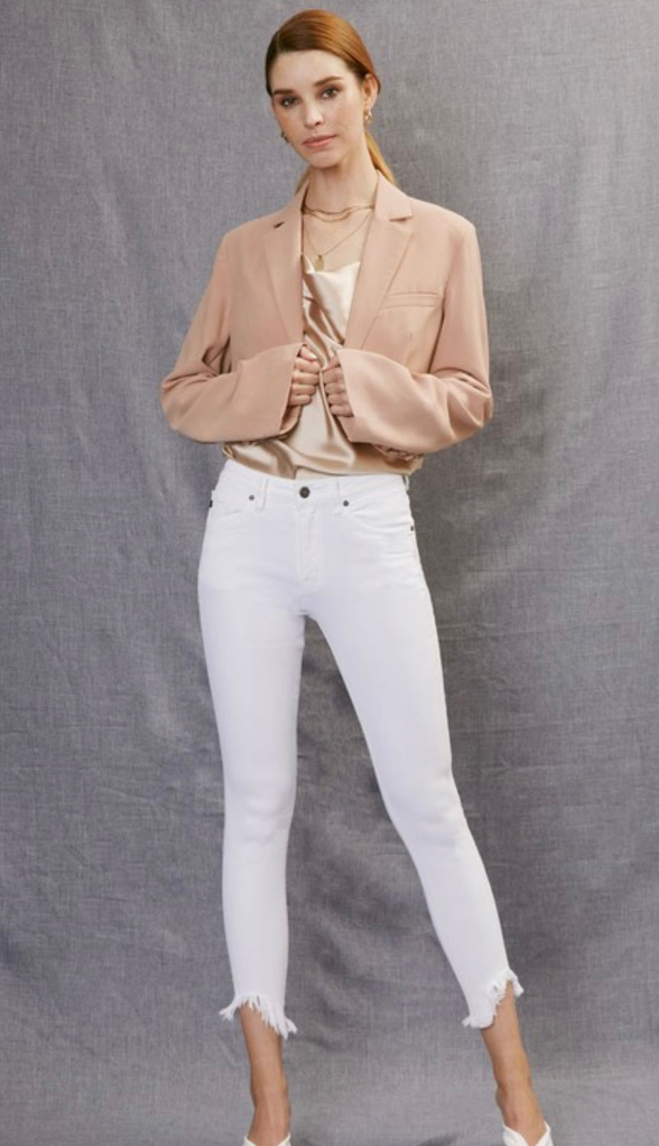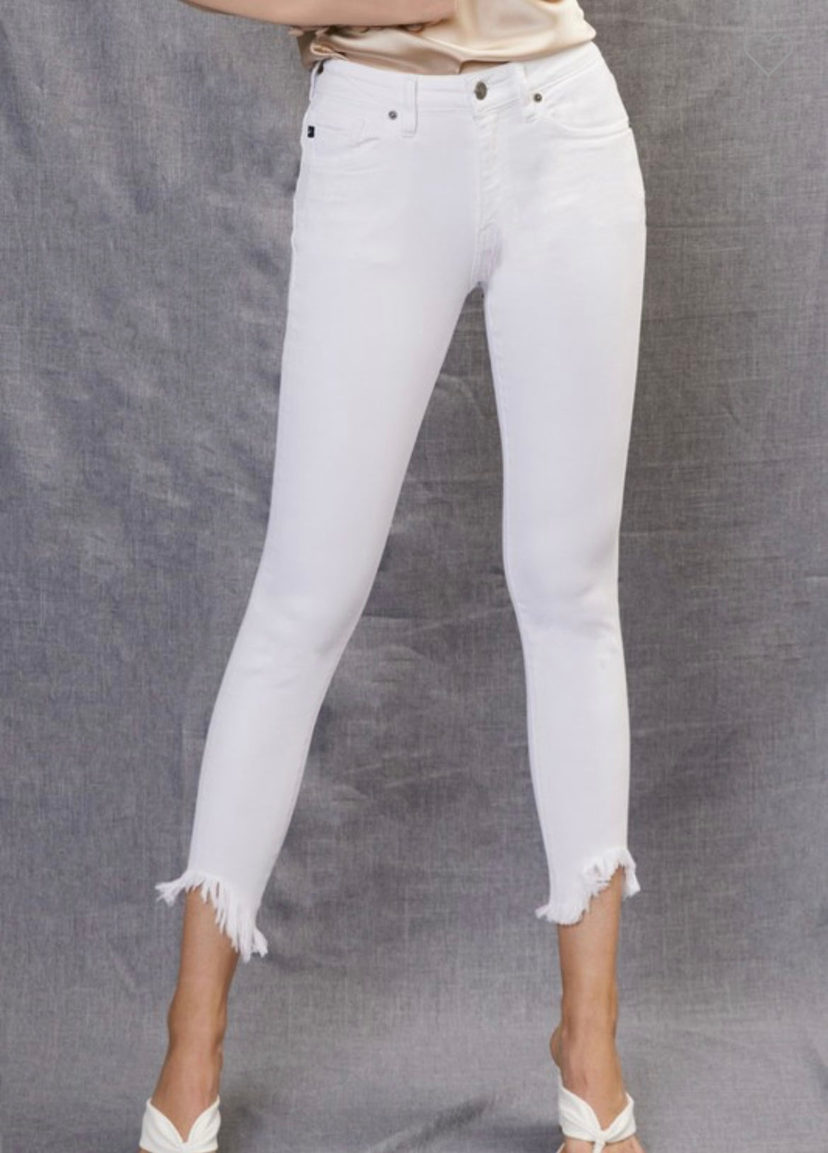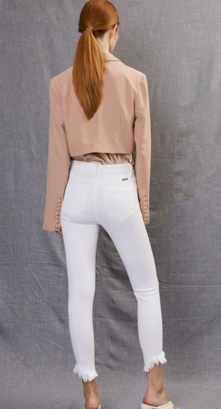 One of our best-sellers & most comfortable!!! Our Kan Can USA Charlotte Jeans are high rise skinny black jeans. Measurements: RISE 9.5" INSEAM 27". Fabric: COTTON 66.4%, POLYESTER 28.35%, RAYON 3.6%, SPANDEX 1.75%. Color: White